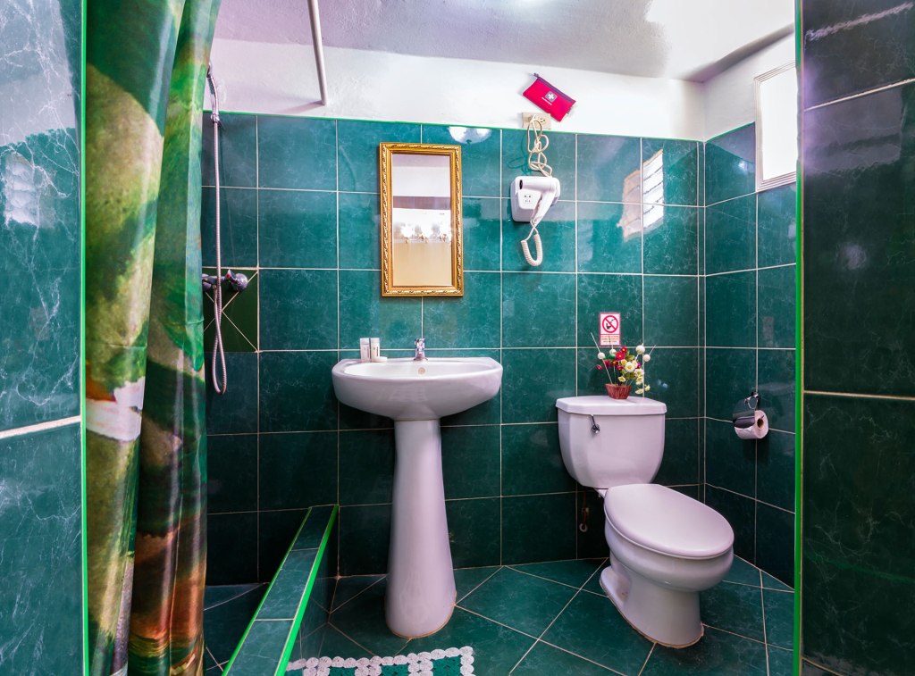 En la Habitación: Caja Fuerte-Secador de Pelo-Sombrilla-Split-Ventilador-Ventanas-Baño Privado-Agua Fría y Caliente 24 horas.
